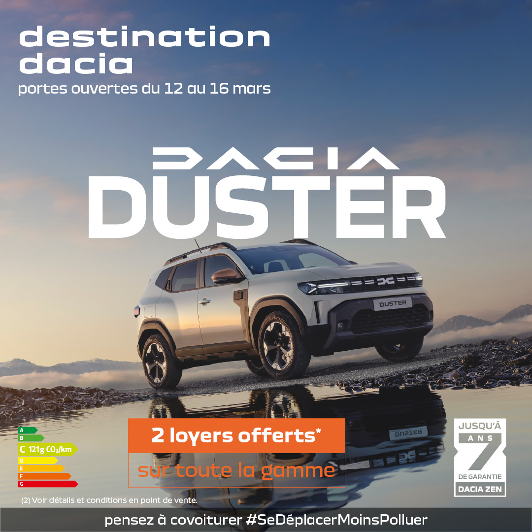 2 loyers offerts* sur toute la gamme Dacia du 12 au 16 mars 2026